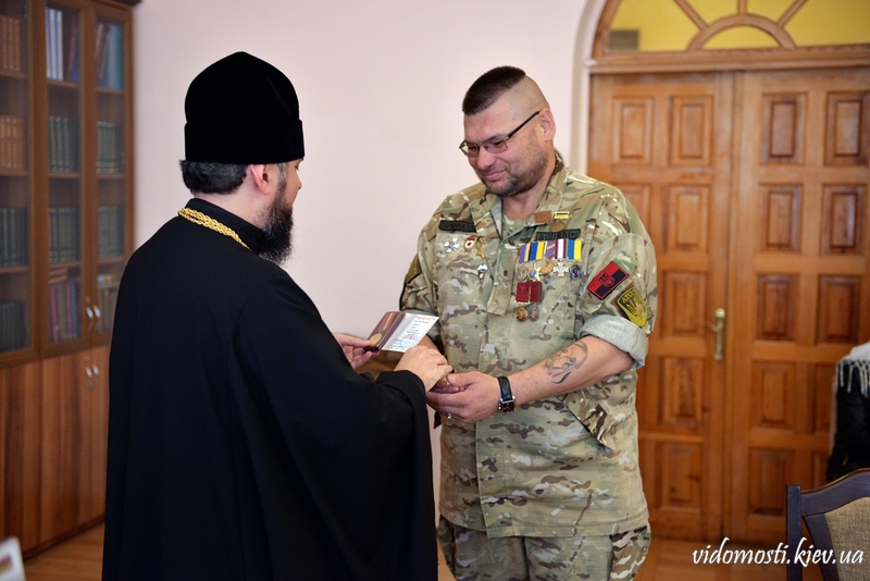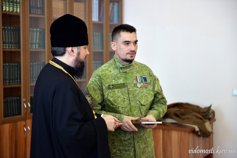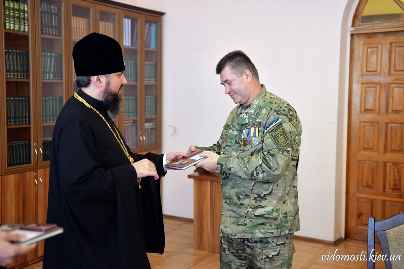 2 жовтня 2017 р. у залі засідань Вченої ради Київської православної богословської академії митрополит Переяслав-Хмельницький і Білоцерківський Епіфаній вручив українським військовослужбовцям медалі «За жертовність і любов до України». Також владика Епіфаній передав кожному у подарунок книгу про таїнство людської природи.
