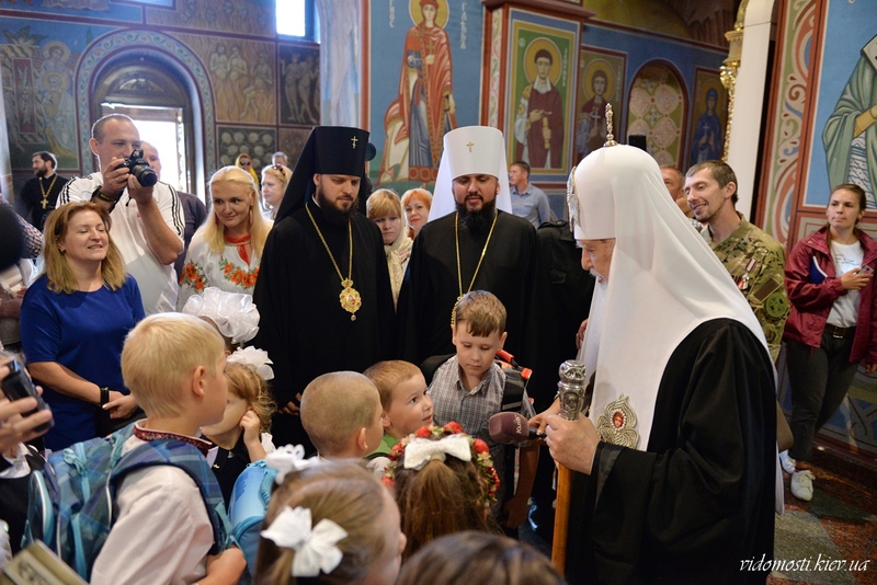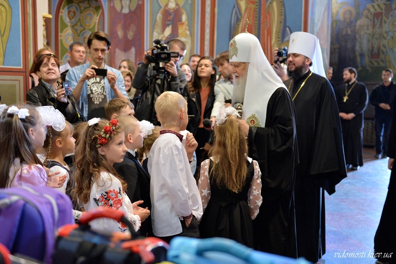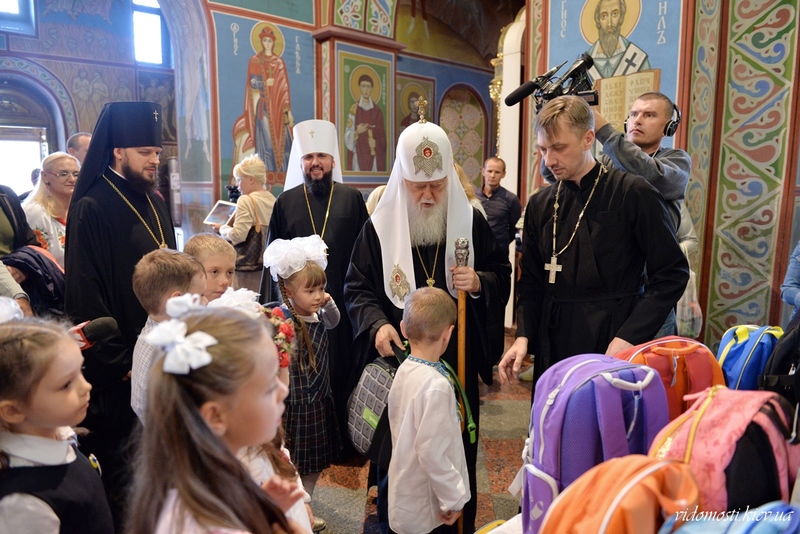 1 вересня 2017 р. у Михайлівському Золотоверхому соборі Святійший Патріарх Київський і всієї Руси-України Філарет привітав першокласників з початком нового навчального року і подарував нові шкільні ранці з усім необхідним для навчання.