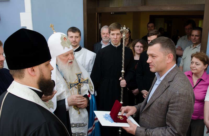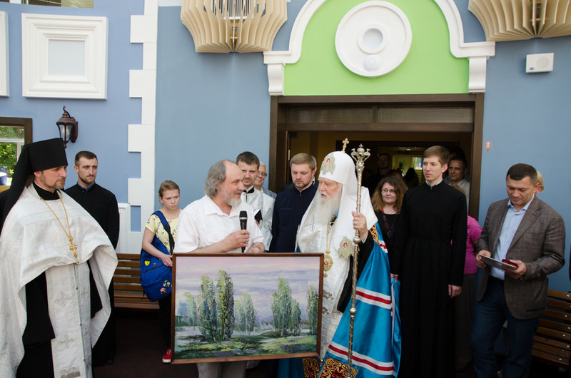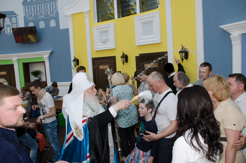 У супроводженні директора Центру Альони Терещенко та інших працівників Предстоятель Київського Патріархату оглянув приміщення Центру, поспілкувався з дітками та їхніми батьками. Завершилося дійство спільним фотографуванням.