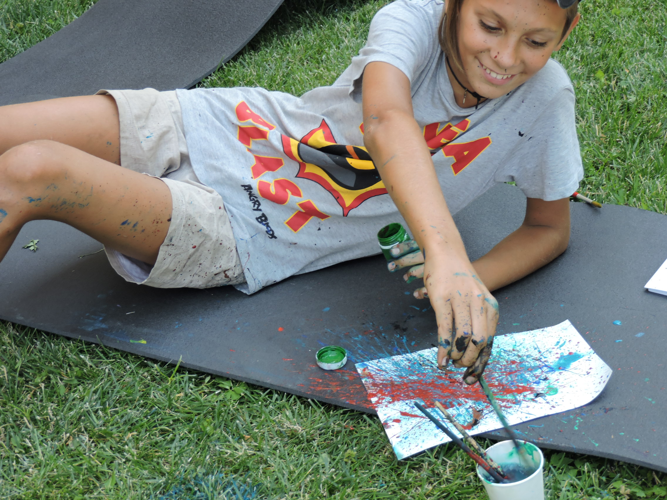 Вдосталь набігавшись, приступили до майстер-класів. Діти створювали майстерні пейзажі, вчилися альтернативному використанню ватних паличок та пензлів.